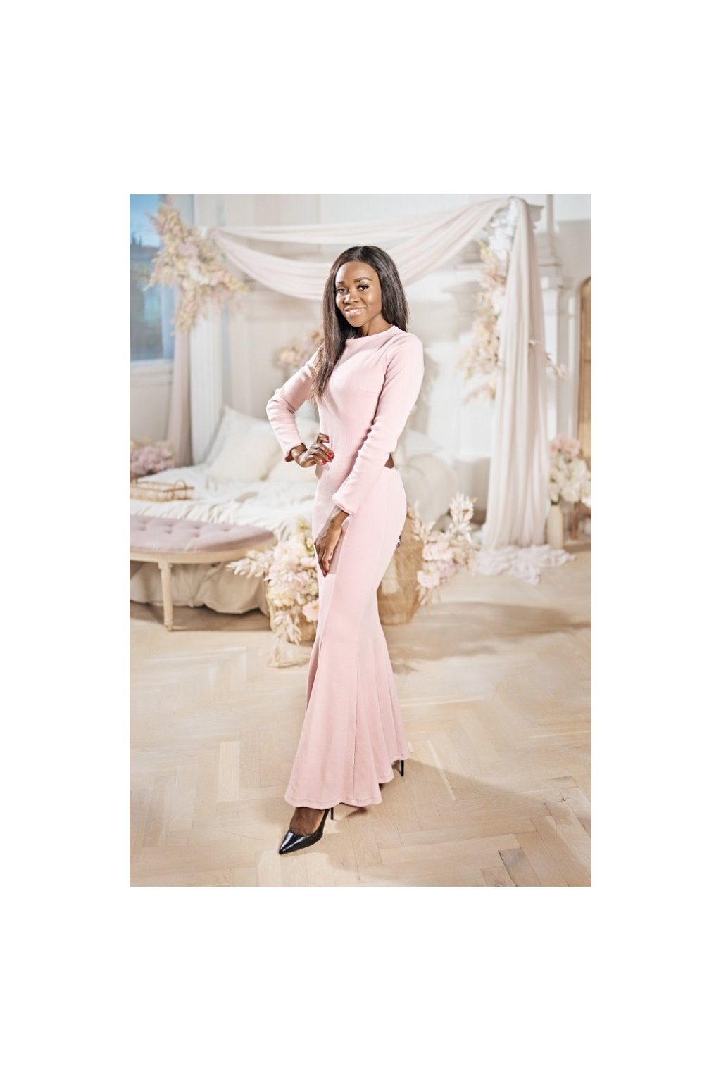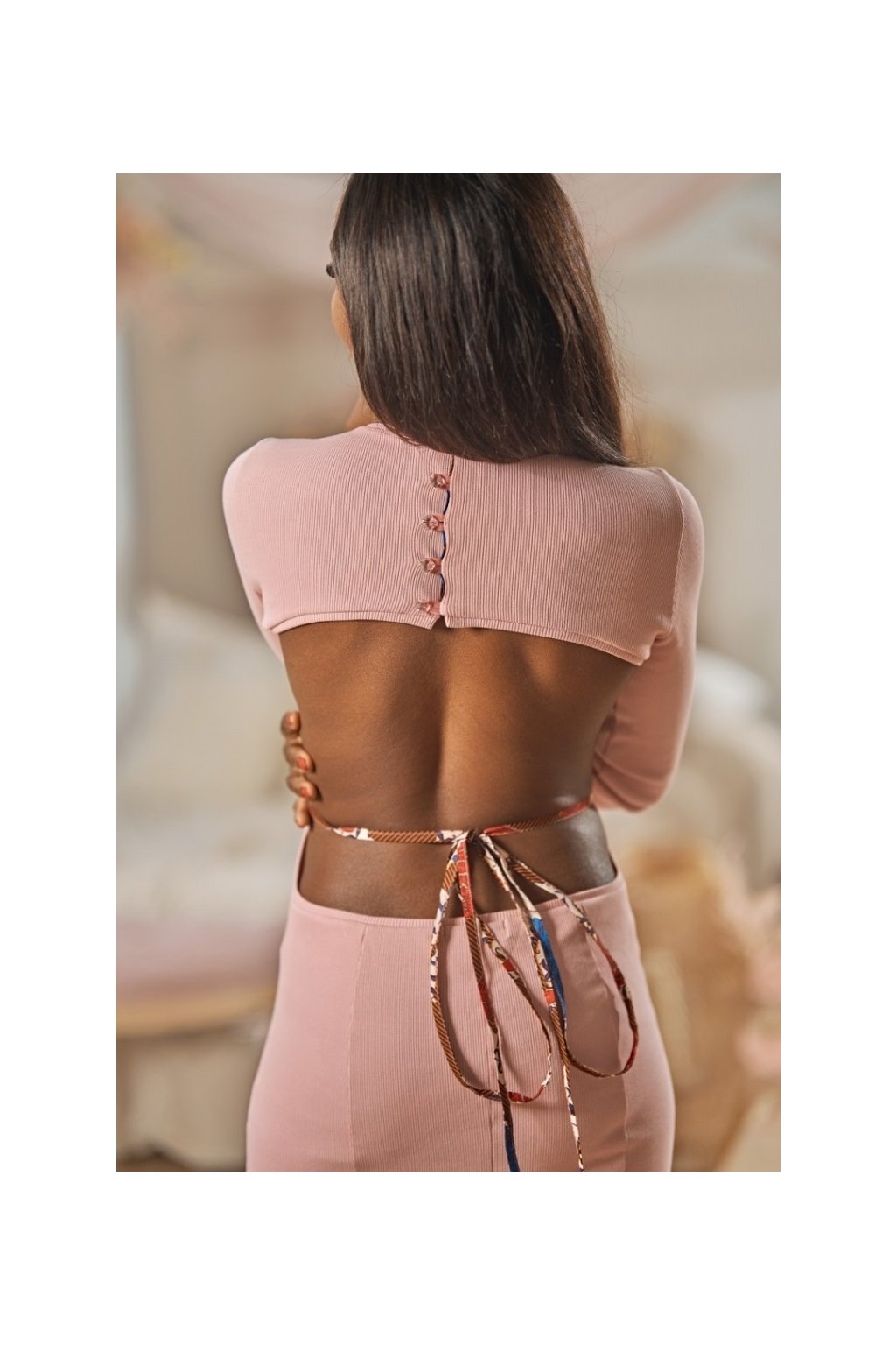 Elegantní růžové pohodlné šaty s odhalenými zády